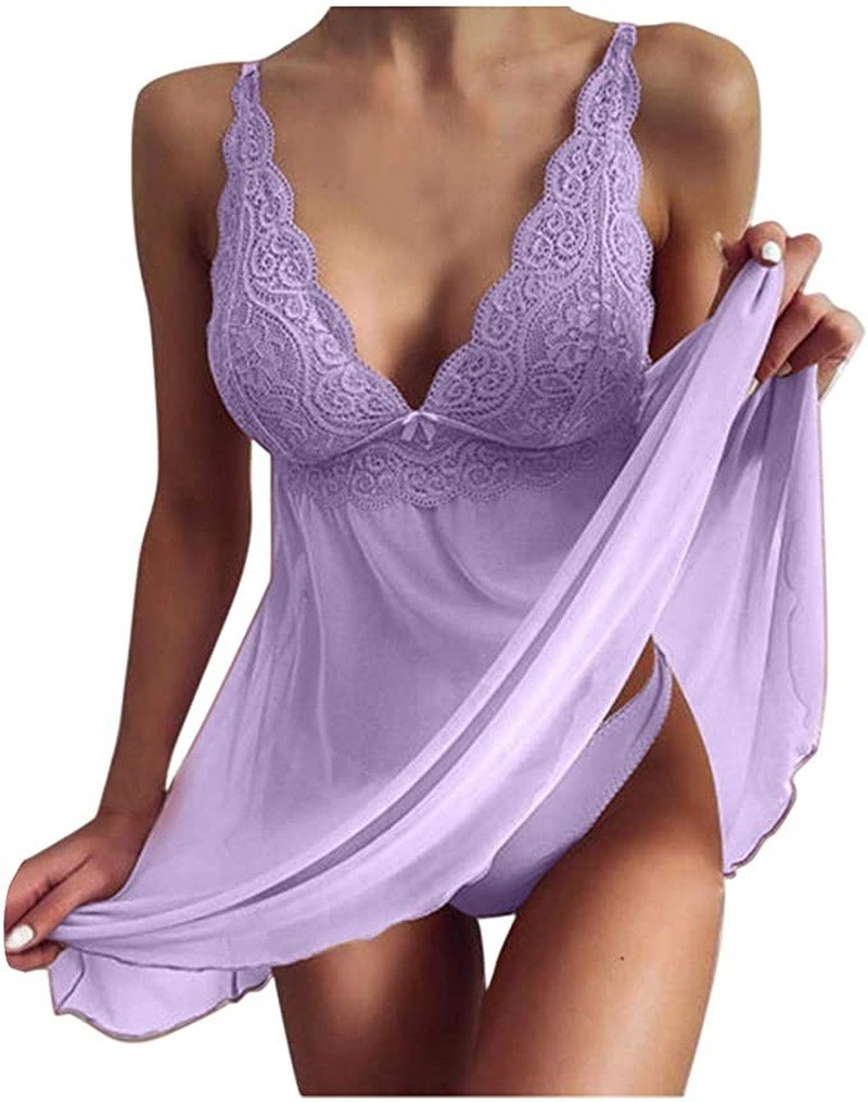 Спокусливий напівпрозорий пеньюар з мереживом - бузковий S (639339160578)